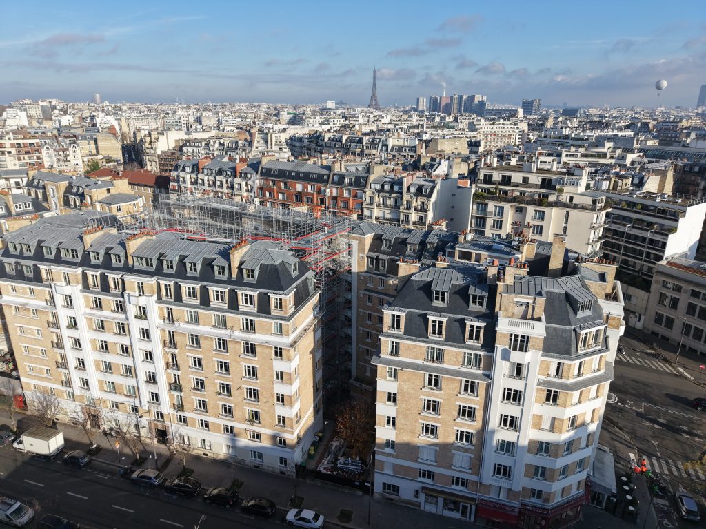 Réparation et reprise partielle des couvertures en zinc. Remplacement des éléments en ardoise endommagés. Réalisation de l’étanchéité des balcons par systèmes SEL et SPEC, garantissant la protection des ouvrages.